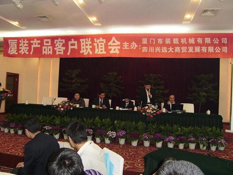 2009年3月21日上午,廈門市裝載機有限公司及四川興遠(yuǎn)大商貿(mào)發(fā)展有限公司共同舉辦的“廈裝機械客戶聯(lián)誼會”在什邡市長江賓館舉行。廈門市裝載機有限公司副總經(jīng)理王曉忠、技術(shù)中心副主任王理和什邡市工商聯(lián)主席鄧家宜出席會議。